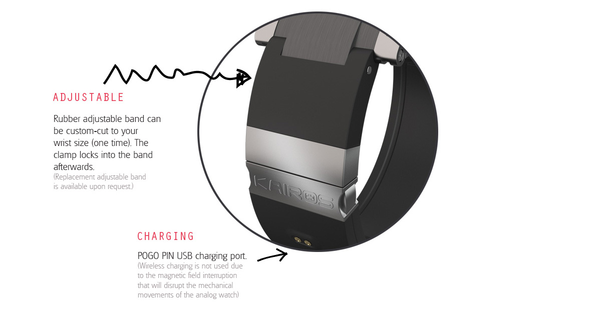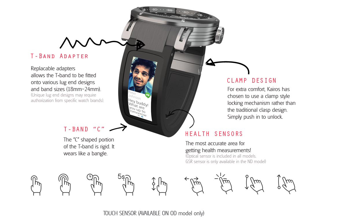 On board Kairos OS will be able to push notifications such as text messages, incoming calls, and also push alerts from available apps via a discreet multi-color LED indicator and/or vibrator motor. On top of having multiple sensors such as 9-axis gyroscope, accelerometer, compass and optical sensor, the ND model also gets GSR (Galvanic Skin Sensor) which detects skin temperature and sweat.